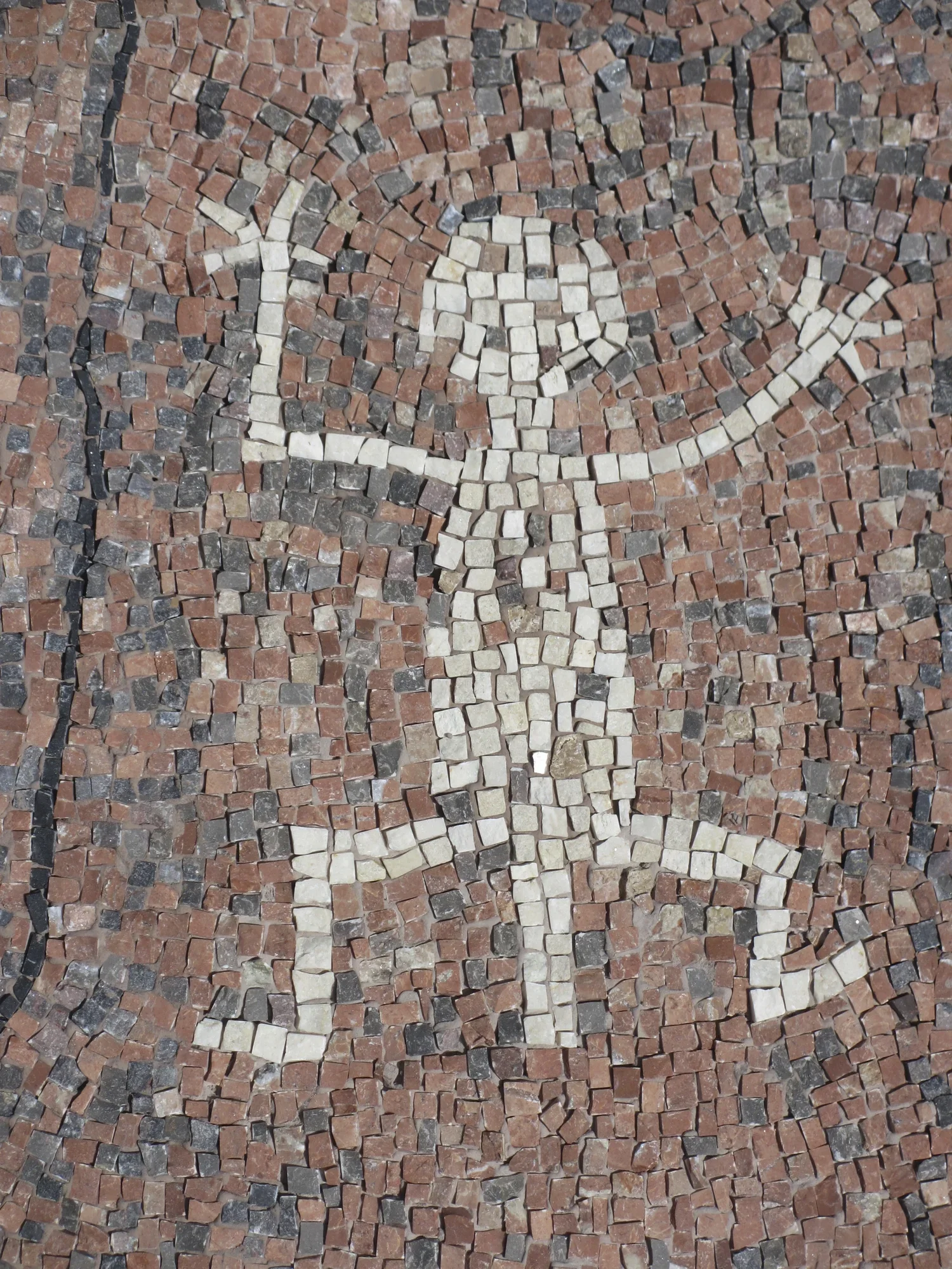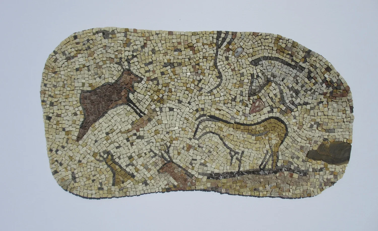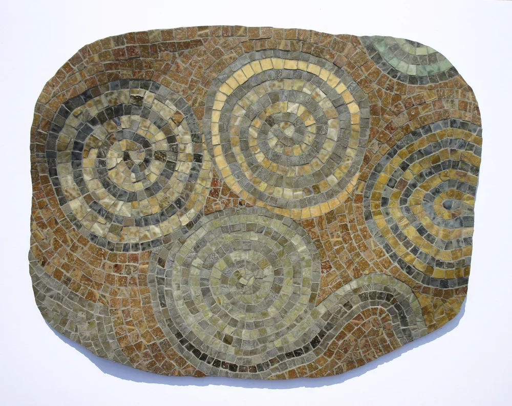 Natural stone on hand-formed substrate. In the petroglyphs and pictographs of the American Southwest, messages emerge as stick figures and symbols rather than accurate renderings. Lunar calendars, religious ceremonies, historical events and relationships between man and nature are depicted in shorthand patterns and stick figures. I visited a remote valley in northern New Mexico and was overwhelmed by the number of images left by Native American nomadic tribes. Were these images of fertility? (Exhibit A: the Spirit Keeper!) Were they place markers?Calendars marking seasons, stars, or female cycles? In her book Valley of Shining Stone, Lesley Poling-Kempes writes, "The Pueblo People of New Mexico believe that the earth is imbued with the breath, thoughts, and feelings of every person that has ever placed a foot upon it. They say that the earth is alive with the spirits of those who have walked across its body: the faraway past vibrates in the soil, and the stories of the long-ago people lie scattered like stones upon the places that once harbored them."