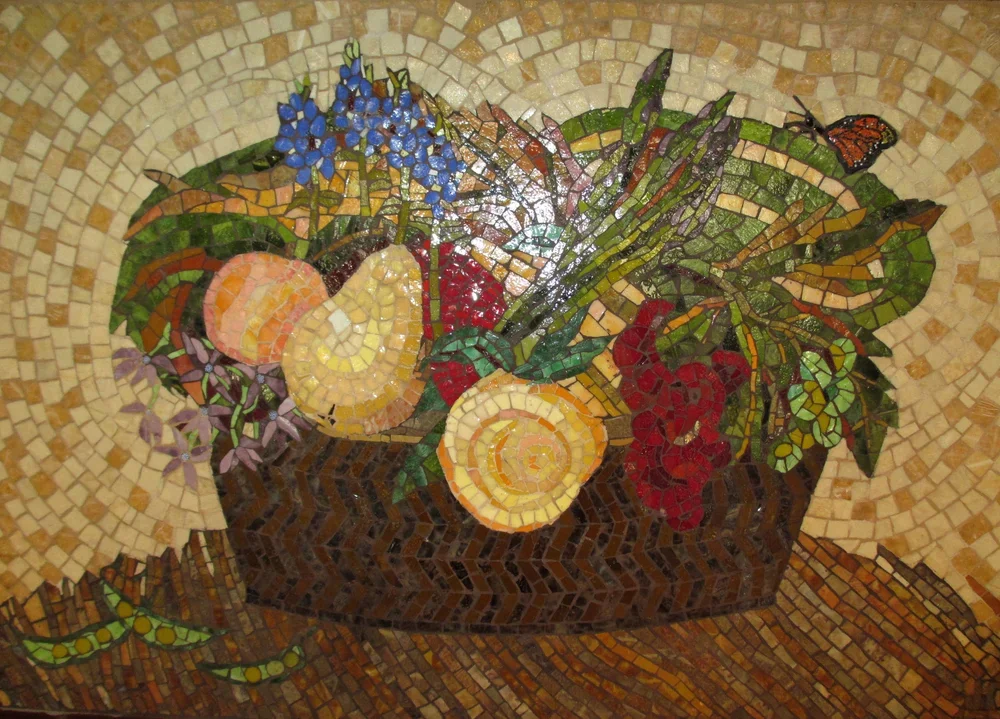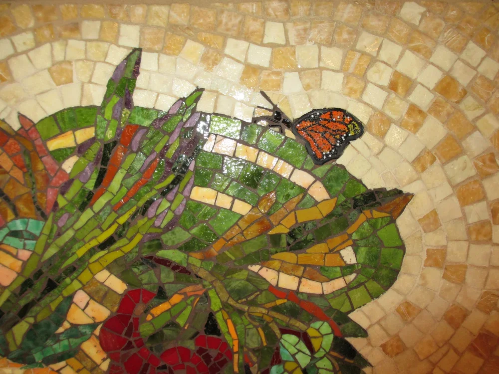 Private residence, Dallas, TX. Mexican and Italian smalti, millefiori and glass filati micromosaic butterfly.