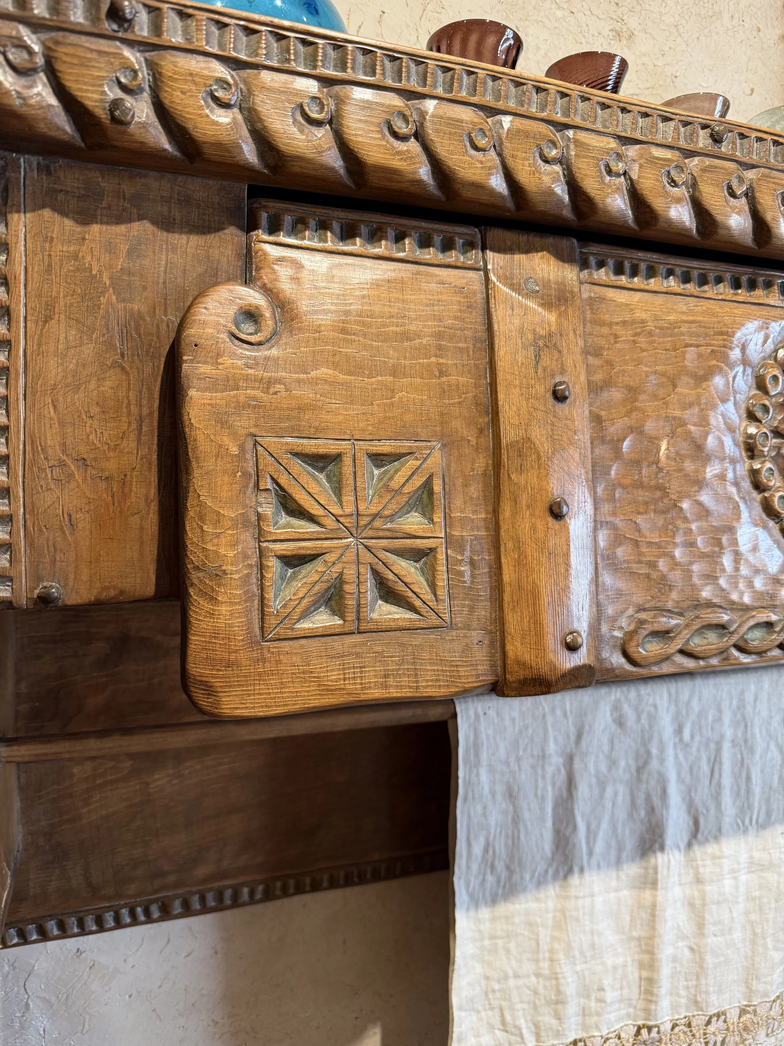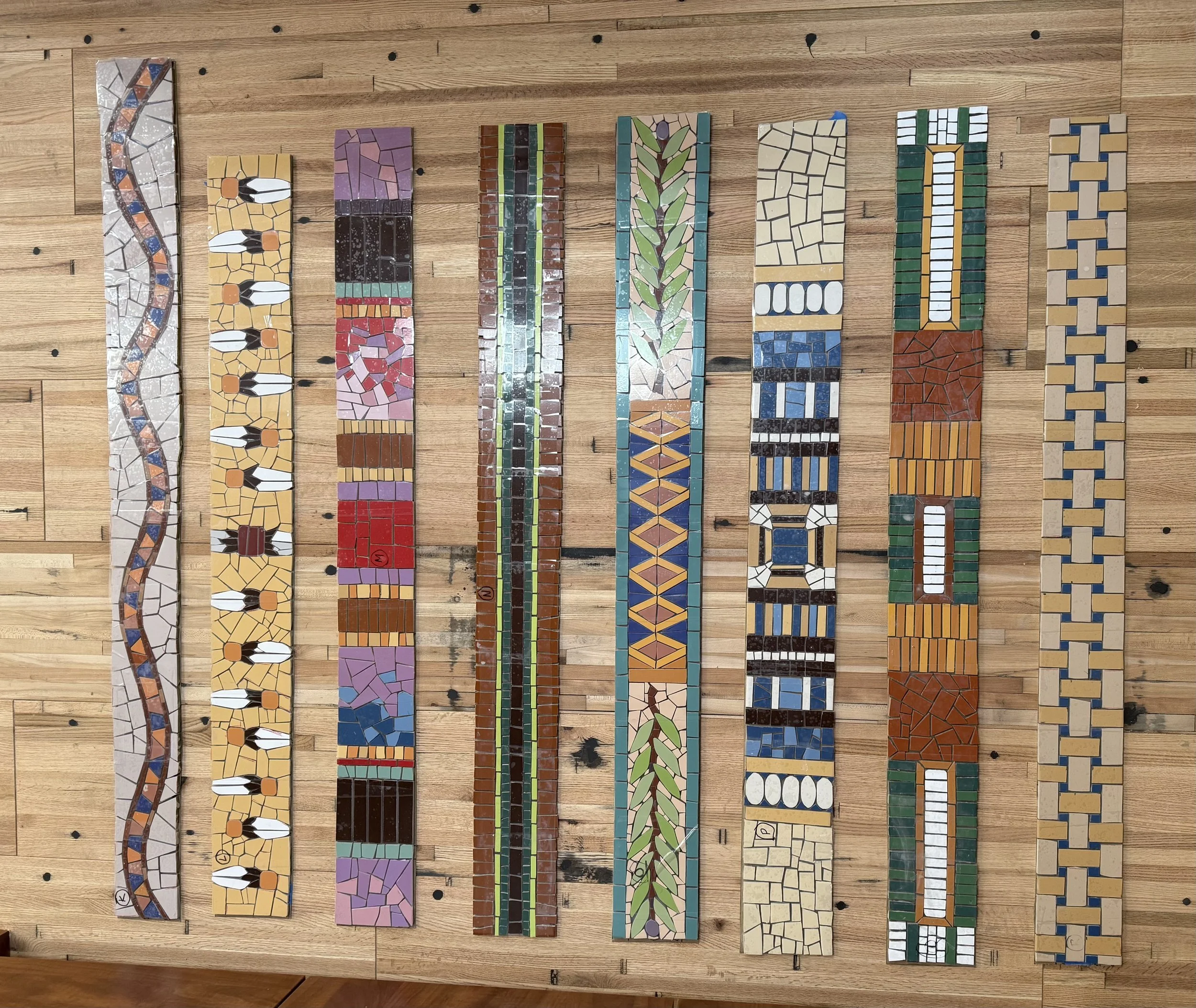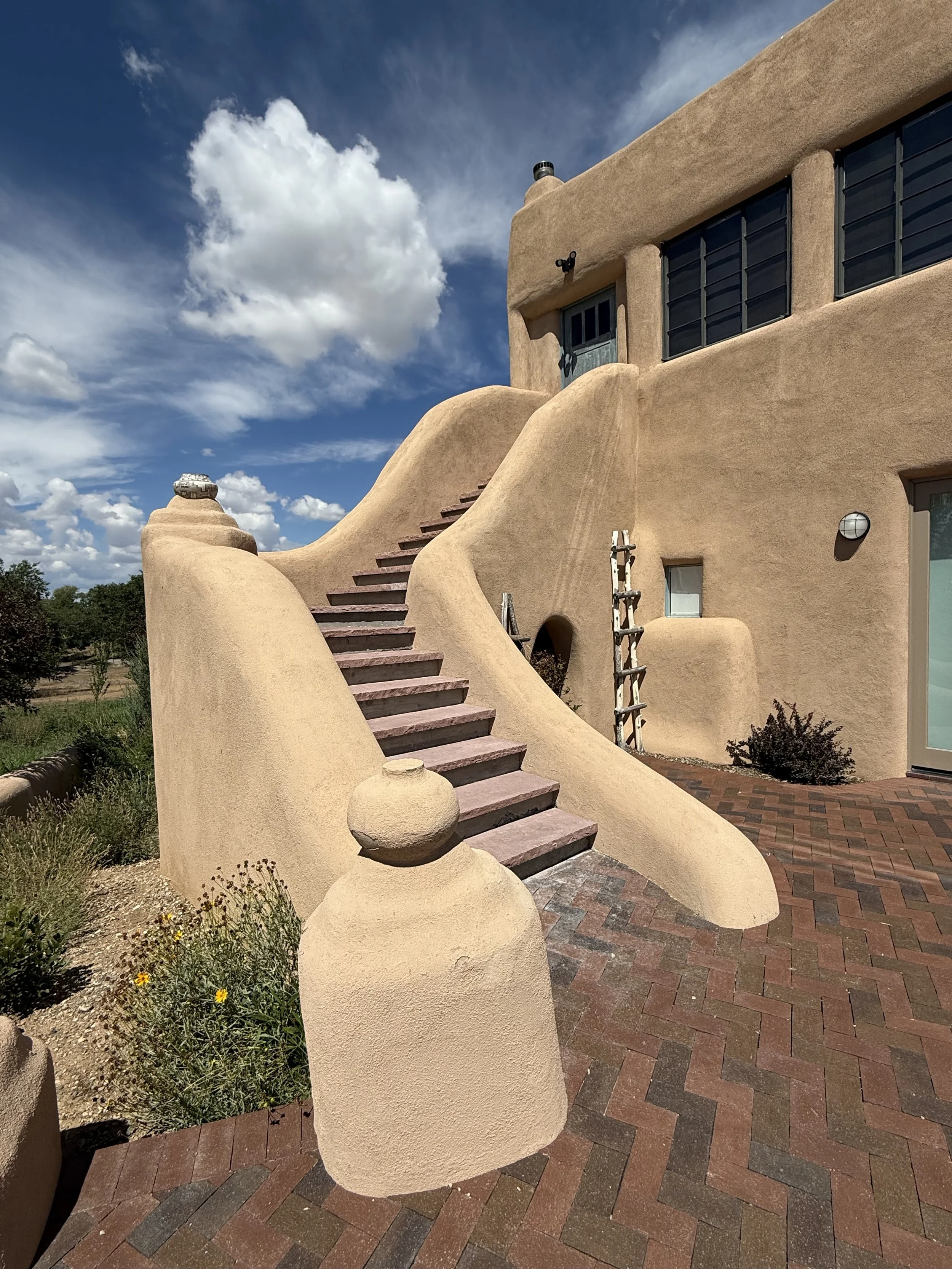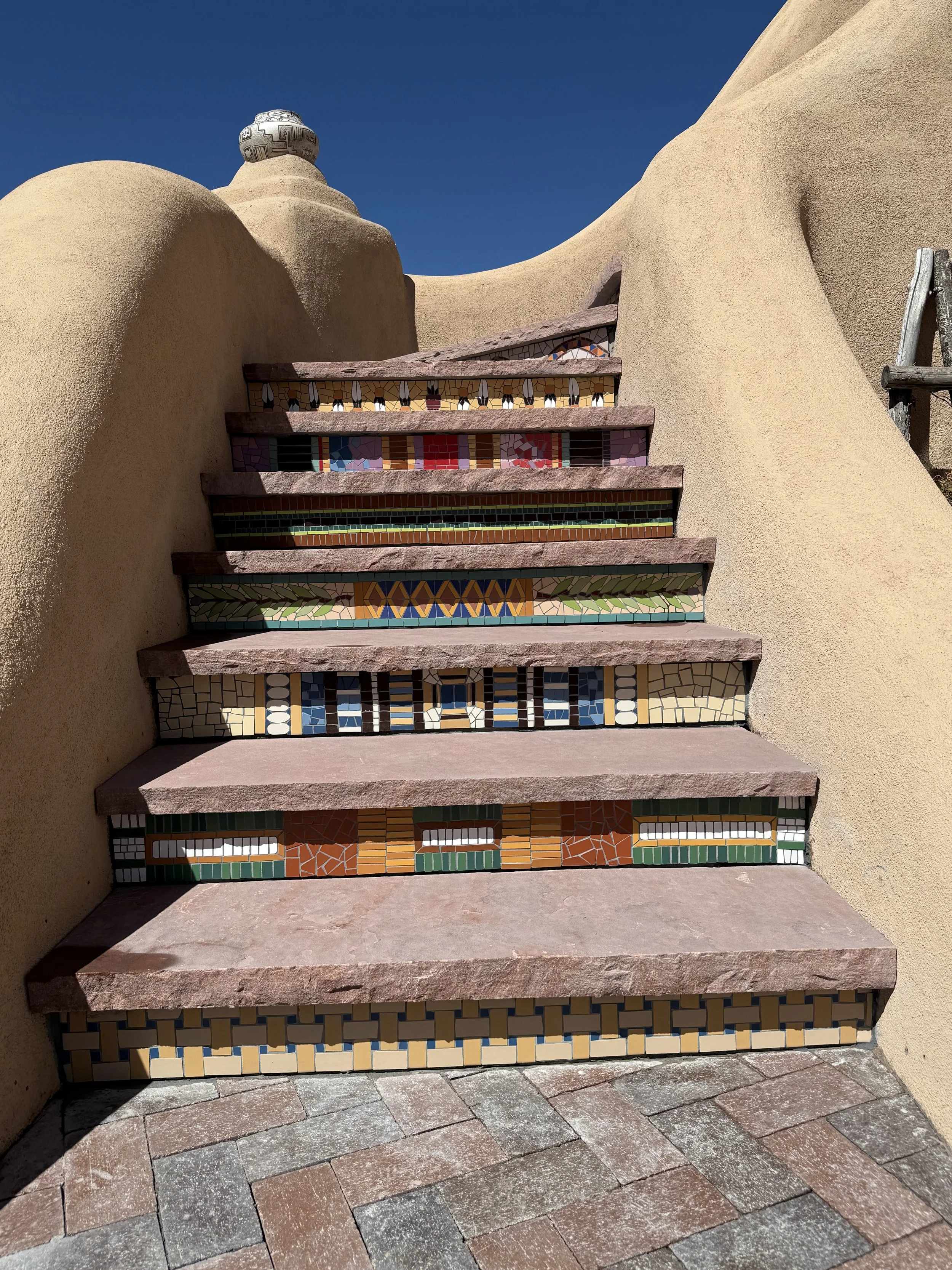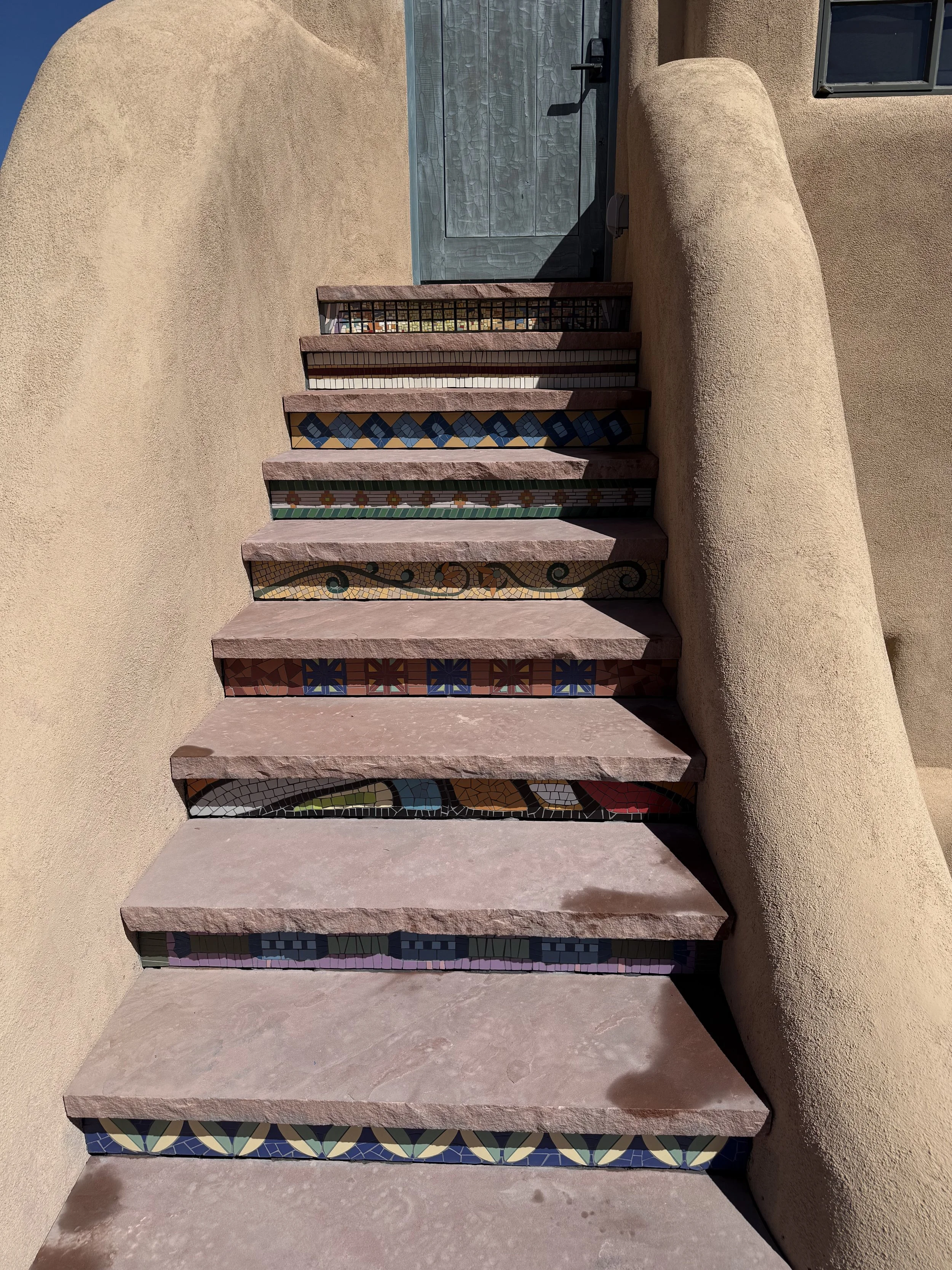 This porcelain staircase is the second commission for a Taos client who has restored a historic adobe home that was once part of the Mabel Dodge Luhan estate. Inspired by motifs and elements of both Taos School painters and the work of Russian-born Taos resident Nikolai Fechin, each step is a unique interpretation of the colors, patterns and textures that make these artists’ work so evocative of the Taos landscape, people and culture.